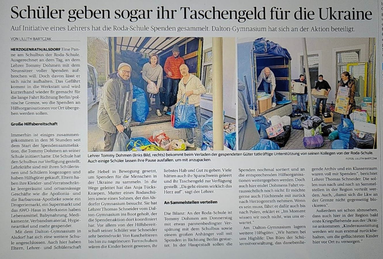 Zeitungsartikel zur Spendenaktion für die Ukraine